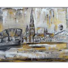Freiburg Skyline abstrakt gemaltes Leinwandbild