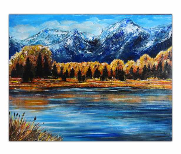 Bergsee, Berg, Gemälde, Landschaftsmalerei, Naturbilder handgemalt. 120x80x4cm.
