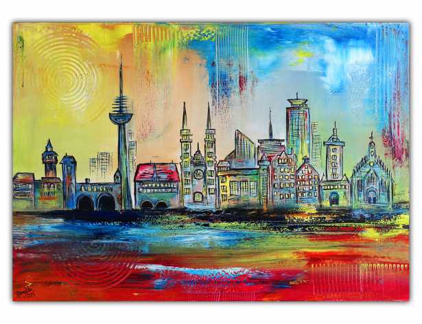 Bild Nürnberg, Kunst, Gemälde, Künstlerbild, Frauenkirche, Kaiserburg Lorenz. 100x70cm.