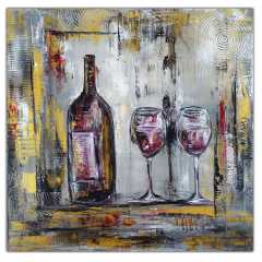 Cheers, abstraktes Gemälde, Weinflasche, Gläser, Kunstwerk modern. 100x100cm.