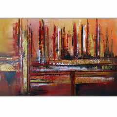 Entity, abstraktes Skyline Gemälde, Acrylbild, Wandbild, rot, gold und braun. 140x80cm.