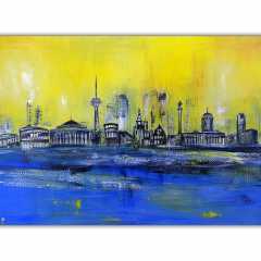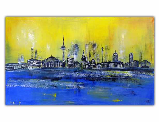 Gemälde Stuttgart, Kunst Bild modern, Leinwand, Acrylbild. 140x80cm.