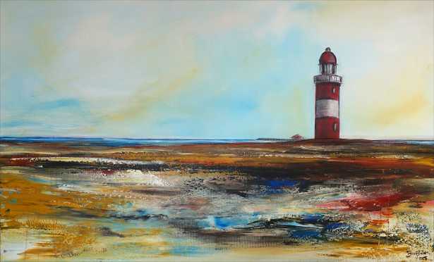 Leuchtturm - Gemälde modern gemalt, Leinwandbild abstrakt. 60x100cm.