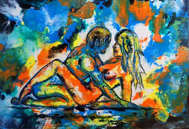 Liebespaar II - Erotik Bild gemalt, Acrylbild, Leinwand, modernes Aktbild. 120x80cm.