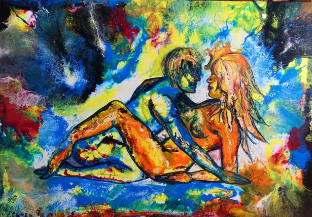 Liebespaar- Malerei, Erotik Bild, handgemalt, bunt, Fluid Art. 120x80cm.