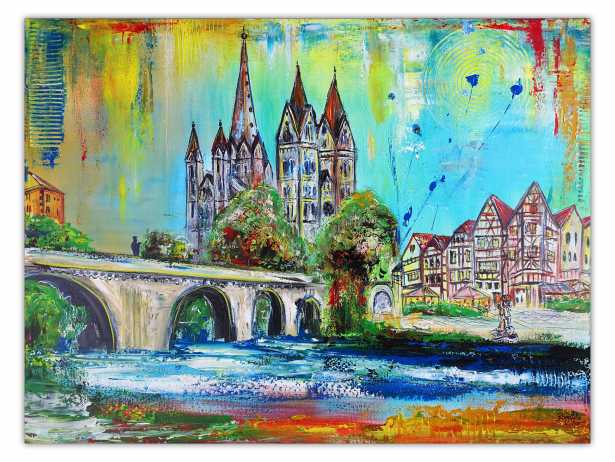 Limburg - Stadtgemälde, Stadtbild handgemalt, modern. 80x60cm.