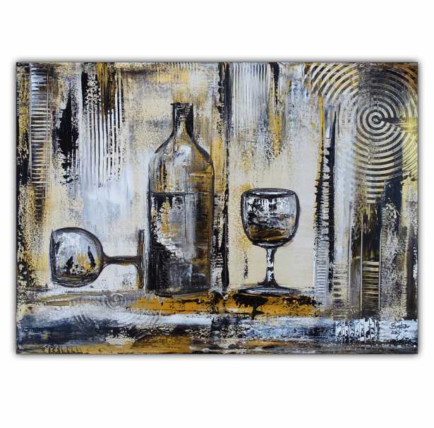 Prosit - Weingemälde, Weinbild mit Gläser, Acrylbild, Leinwandbild. 80x60cm.