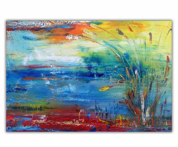 Unterwasserwelt - abstrakte Landschaftsmalerei, blau und rot, abstraktes Acrylbild modern. 80x60cm.