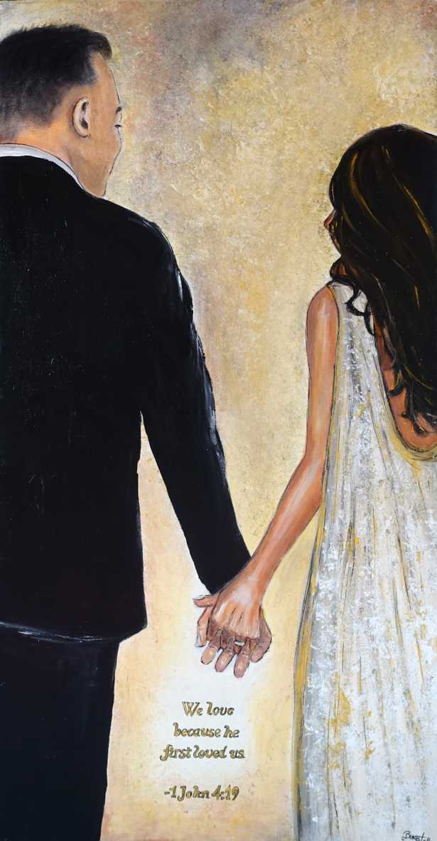 We love - Auftragsmalerei, Hochzeitsbild, modern gemaltes Bild, Hochzeitspaar. 60x120cm.