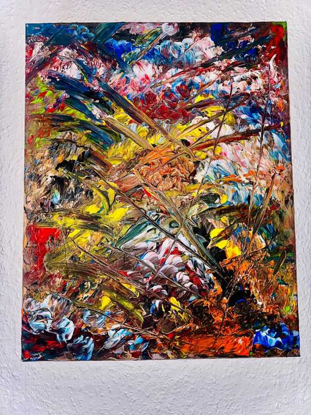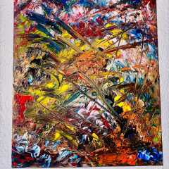 In meinen Gemälde manifestiert sich die Explosion als entfesselte Energie, in Flammen ausgedrückt. Leidenschaftliche Pinselstriche enthüllen tiefste innere Welten, ein Tumult von Farben, der die Stille durchbricht. Wie Gedanken, die in den Himmel aufsteigen, breitet sich die emotionale Intensität aus. Die Leinwand wird zum Instrument eines Lobgesangs der Gefühle, flüchtige Augenblicke für die Ewigkeit festgehalten. Die Intensität der Darstellung erinnert daran, wie menschliche Empfindungen das Leben durchdringen und uns dazu bringen, uns in den kreativen Akt hineinzustürzen. Ein Zusammenspiel von Chaos und Kontrolle, das uns zeigt, wie Kunst uns verbindet und bewegt.